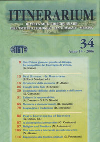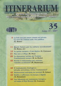 Itinerarium, anno 15, n. 35, gennaio-aprile 2007 Editoriale: RUSSO Giovanni, La fede non può essere vissuta nel privato. La voce dei cristiani nella vita pubblica. Mons. Calogero LA PIANA, nuovo Arcivescovo Metropolita di Messina, Lipari, S. Lucia del Mela.LA PIANA Mons. Calogero, “Vias tuas Domine”: indicare all’uomo in ricerca le vie del Signore. Sezione MonograficaQuale futuro per la cultura occidentale? RUSSO Giovanni … Continua a leggere n. 35 – 2007