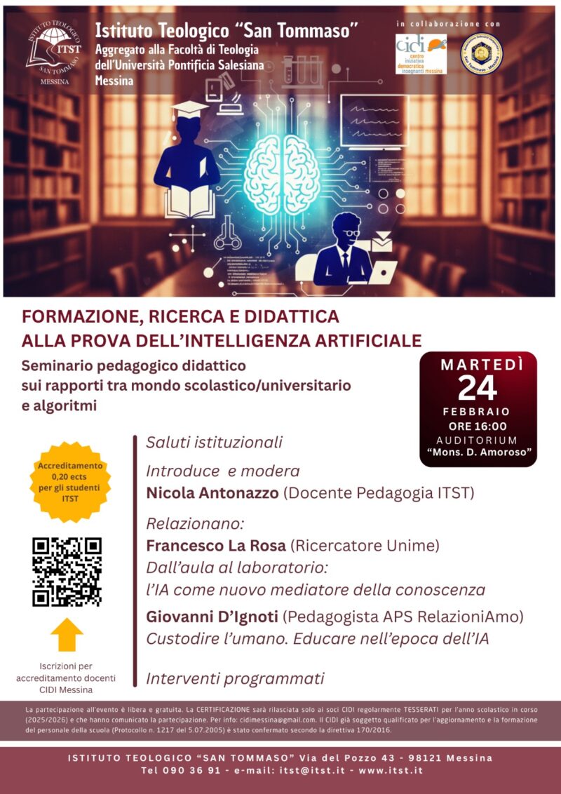 News 23 Febbraio 2026 aruello Formazione, ricerca e didattica alla prova dell’intelligenza artificiale – Martedì 24 febbraio 2026, ore 16,00 Formazione, ricerca e didattica alla prova dell'IA