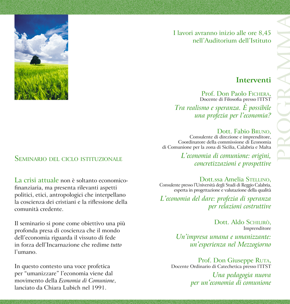 Senza categoria 23 Ottobre 2008 sEEd_aDm_wP Seminario – Una profezia per l’economia Link al sito di “Economia di comunione” http://www.edc-online.org/it/home/eventi-italia/2076-italia-messina-14122011.html Seminario-2 Ruta-Economia-di-comunione-relazione-definitiva Stellino-Per-una-profezia-delleconomia Fichera-Tra-realismo-e-speranza