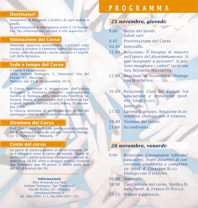 Il Corso Nazionale è organizzato dall’Istituto Teologico “S. Tommaso d’Aquino”, aggregato alla Facoltà di Teologia della Università Pontificia Salesiana, Roma e autorizzato dalla Conferenza Episcopale Italiana, Settore Scuola: Roma, 30 novembre 2009.